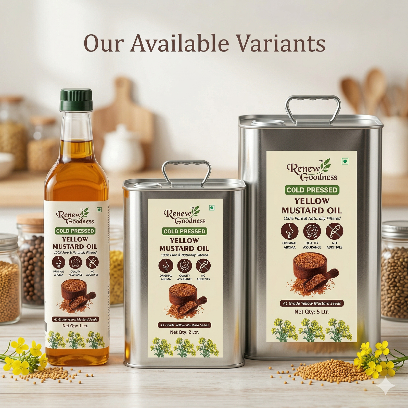 Unlike black mustard oil, yellow mustard oil is naturally less pungent and has a beautiful, light golden color that won’t alter the appearance of your dishes. By extracting the oil using modern cold-press technology—completely free from external heat—we ensure that its vital nutrients, subtle aroma, and natural antioxidants are perfectly preserved. It is a pure, unrefined alternative to mass-produced, chemically treated cooking oils.