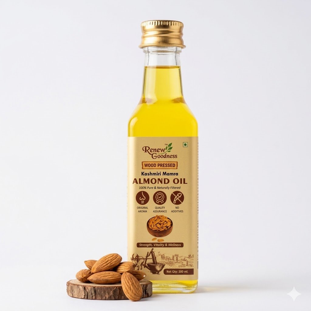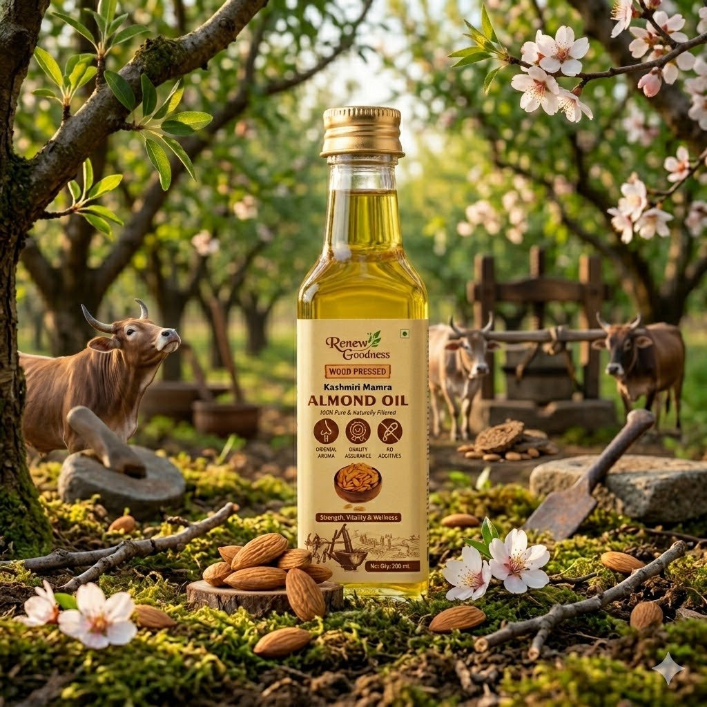 Pure Wood-Pressed Kashmiri Mamra Almond Oil (Badam Rogan / Kachi Ghani)
